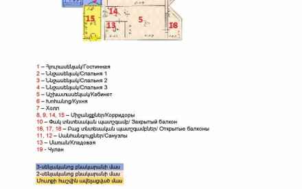Продается просторная (175 кв.м.) 5-комнатная квартира по адресу ул․ Царав Ахбюр 55/5, на 9-ом этаже 9-этажного дома. Фактически у квартиры такая большая площадь благодаря тому, что были соединены две соседствующие квартиры: 3-комнатная и 2-комнатная. Юридически (согласно кадастровым документам) они остаются как две отдельные квартиры, а технически при необходимости их можно снова разделить в течение нескольких дней, без значительных строительных работ и с небольшими затратами.