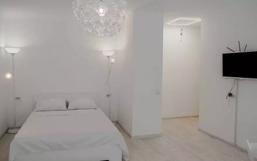 Спальные места: двуспальная кровать+раскладывающийся диван. В квартире могут с комфортом разместиться 1-4 человека