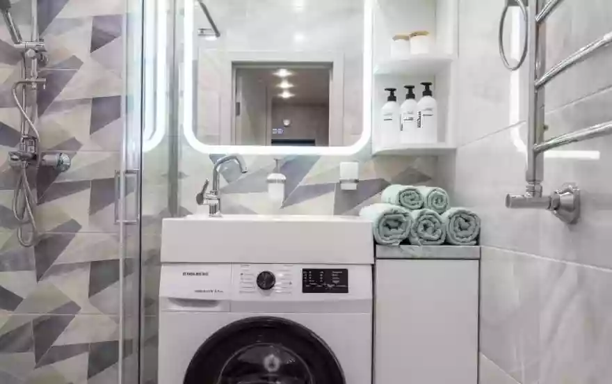 Стиральная машина, фен, утюг, гладильная доска, сушилка для одежды